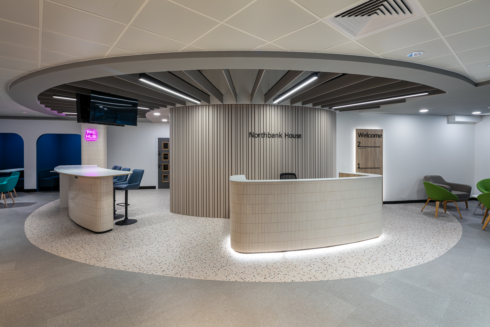The brief centred on creating a welcoming, comfortable, and acoustically considered environment that would appeal to both tenants and visitors.